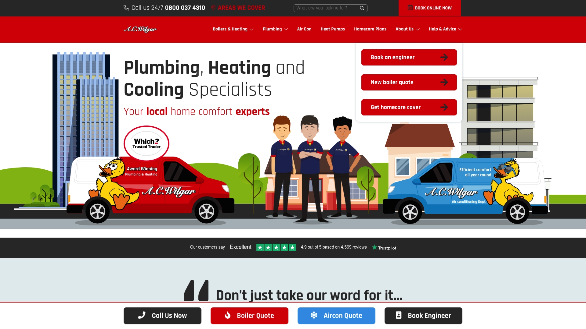 A.C. Wilgar provides Boiler & Heating Repair, Boiler Servicing and New Boilers installations alongside Smart Controls for heating systems. They also offer Homecare Plans, an online booking and quote wizard, and 24/7 Emergency Service for urgent faults.