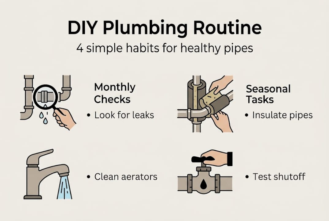 Check for leaks monthly, clean aerators, insulate pipes, and know your main shutoff — these four habits alone prevent the majority of plumbing emergencies.
